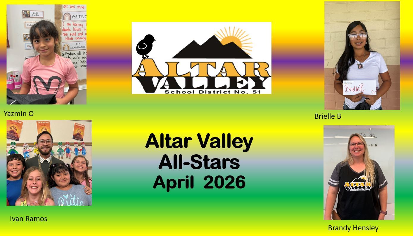 We value each of our students and staff in the Altar Valley School District. These All-Stars, who work tirelessly to benefit our AVSD community, deserve our praise and gratitude.